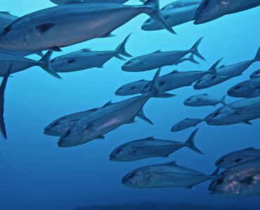 Depth 45m. Current minimum. Taking macro shot of moving starfishes tentacles. Out of the sudden gets dark. Huge school of amberjacks surounds